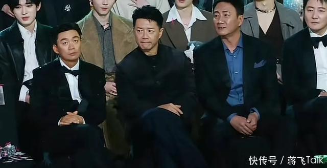 于是就有了这样一副壮观场面,前排坐着的都是叔圈头部。 张嘉益、王宝强、段奕宏、胡军、郭京飞同框,坐在第一排的右半边。